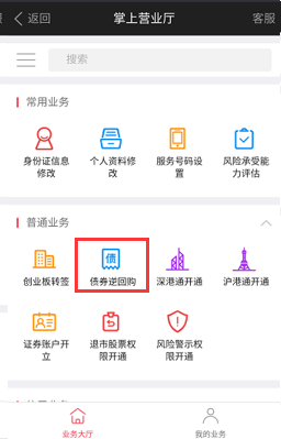 登录手机交易软件“财富乐赚”,选择“我的”-业务办理-债券逆回购,签署债券逆回购交易风险揭示书,申请开通。下载 “财富乐赚” 的链接地址:/main/include/software.html