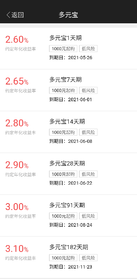 购买起点1000元,购买最高额度5万,产品每天额度100万。