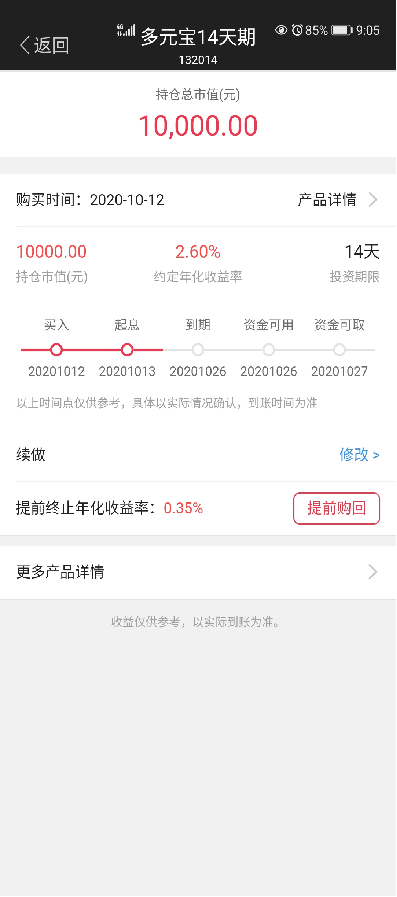 3.提前购回:提前购回资金当天可用,次一交易日可取。