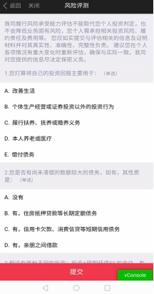 步骤3:风险测评,请按照个人实际情况如实填写风险测评问卷。